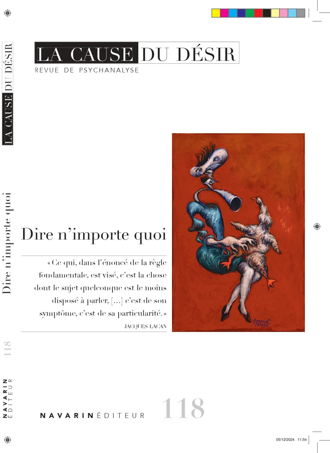 Que le patient soit capable de « quitter sa position de vérité […] pour se mettre à jouer au jeu du signifiant [mfn]Ibid.[/mfn] », constitue dès lors un « critère d’analysabilité [mfn]Miller J.-A., « Au commencement était le transfert », Ornicar ?, no 58, juin 2024, p. 191.[/mfn] ». « Mode de dire irresponsable [mfn] Ibid., p. 192.[/mfn]» certes, lieu d’un « je ne pense pas [mfn]Miller J.-A., « L’orientation lacanienne. Jalons dans l’enseignement de Lacan », op. cit., cours du 26 mai 1982, inédit.[/mfn]», on ne saurait néanmoins confondre le « dire n’importe quoi » (la formule est de Lacan qui la jugeait plus juste) avec « la permission de se répandre en dits sans importance [mfn]Miller J.-A., « Au commencement était le transfert », op. cit., p. 192.[/mfn] ». Notre époque, qui se gargarise de transparence, aurait vite fait de réduire la règle fondamentale à un « tout dire » de pacotille. Or le « dire n’importe quoi » de l’analyse n’est pas un dire sans conséquence : l’énonciation analytique suppose que mon dire soit « malgré tout versé […] au compte de mon inconscient [mfn]Ibid.[/mfn] ». C’est pourquoi, « au cœur même de cette irresponsabilité du dire en analyse, pas à pas, apparaît le sentiment de culpabilité [mfn]Miller J.-A., « Éloge du sentiment de culpabilité », La Cause du désir, no 118, décembre 2024, p. 14.[/mfn] ».
