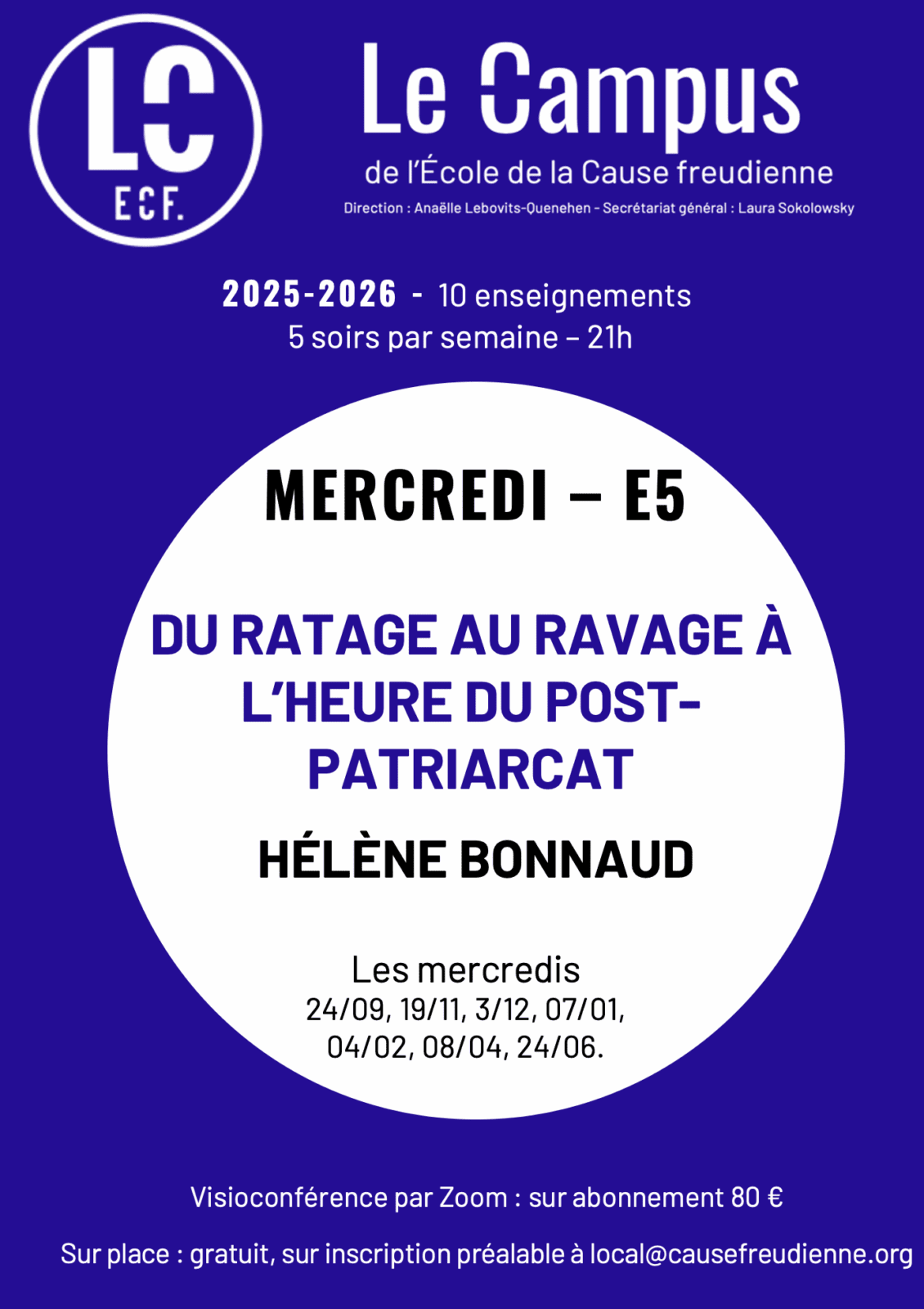 Plus d’infos : local@causefreudienne.org – 01 45 49 02 68