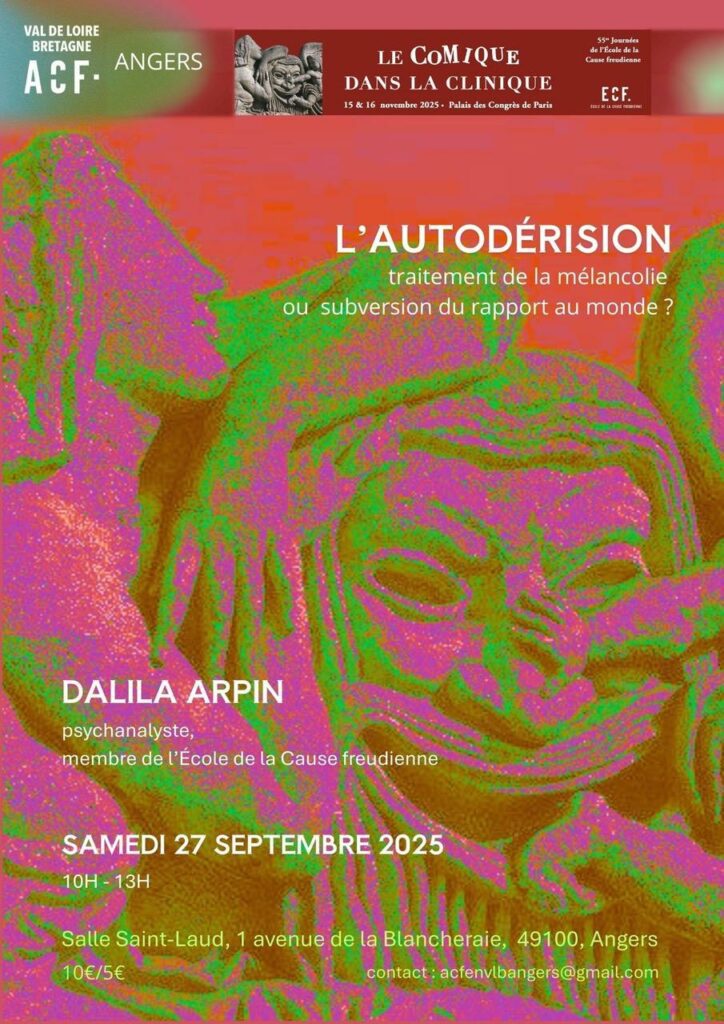 Recherche Catégories Toutes404 (1)415 (1)425 (1)426 (1)AMP (5)Archives (1)Campus de l'ECF (103)Cartels (15)Cera (27)CPCT-Paris (9)ECF (15)Fipa (1)JIE (1)Journées de l'ECF (32)LWT (91)Pipol (2)Psychanalyse-Paris 8 (6)Résonances (11)Uforca (4) Paroles d’autistes, s’enseigner des témoignages Cause freudienne, Cera Lire la suite Errances Cause freudienne, Psychanalyse-Paris 8 Lire la suite XVe Congrès de l’AMP en 2026 AMP, Cause freudienne Lire la suite Charles Chaplin, l’art de combiner le tragique et le comique Cause freudienne, Journées de l'ECF Lire la suite Paroles d’autistes: S’enseigner des témoignages – Deuxième séance Cause freudienne, Cera Lire la suite Ethique et comique du vivant en psychanalyse Cause freudienne, Journées de l'ECF Lire la suite Soirée Ciné-Débat: Selfie Cause freudienne, Journées de l'ECF Lire la suite Paroles d’autistes: S’enseigner des témoignages – Première séance Cause freudienne, Cera Lire la suite L’autodérision : traitement de la mélancolie ou subversion du rapport au monde ? Cause freudienne, Journées de l'ECF Lire la suite Le comique dans la clinique, lectures en cartel Cartels, Cause freudienne Lire la suite Force comique Cause freudienne, Journées de l'ECF Lire la suite Freud et sa découverte comique Cause freudienne, Journées de l'ECF Lire la suite 1 2 3 4 5 … 9 10 11 12 Suivant »