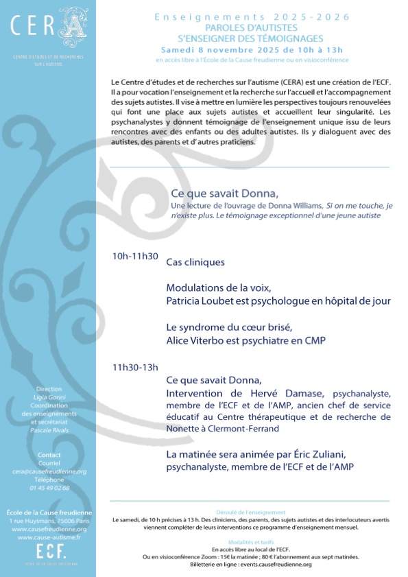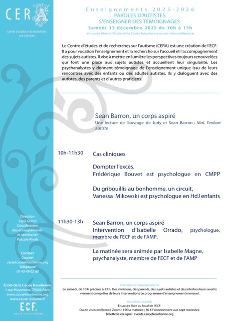 Paroles d’autistes: S’enseigner des témoignages – Première séance Cause freudienne, Cera Lire la suite